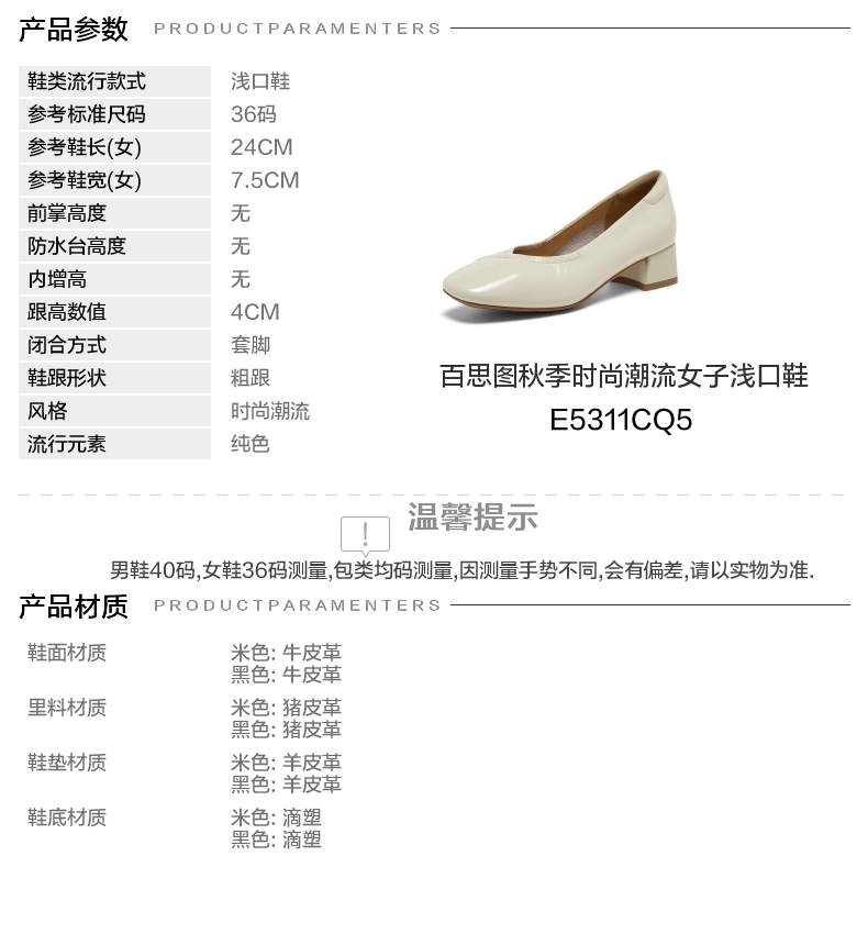 | 风格:时尚潮流 | 跟高数值:4CM | 色系:米色 | 配跟:无 | 性别:女子 |