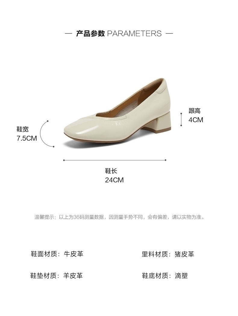 | 鞋头款式:方头 | 鞋底材质:滴塑 | 鞋面图案:纯色 | 内增高:无 | 鞋跟形状:粗跟 |