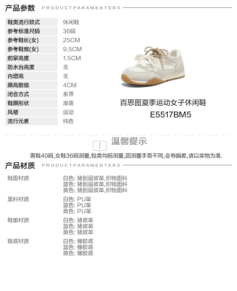 | 流行元素:纯色 | 参考鞋长(女):25CM | 参考鞋宽(女):9.5CM | 风格:运动 | 年份:2025年 |