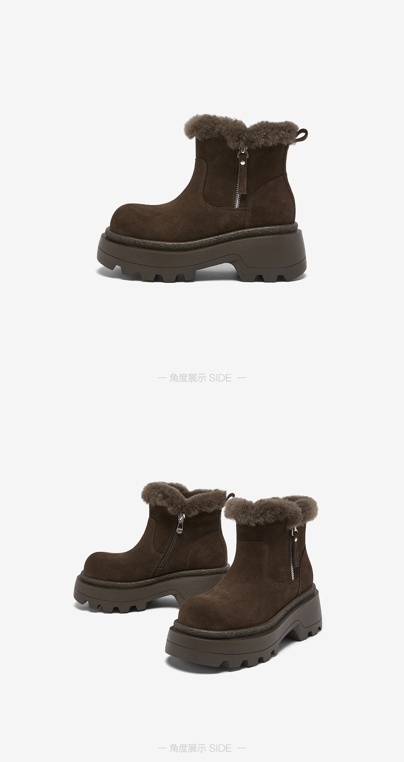 | 鞋底材质:TPR大底 | 靴筒内里材质:人造长毛绒 | 内增高:无 | 鞋面材质:牛剖层皮革 | 闭合方式:侧拉链 |
