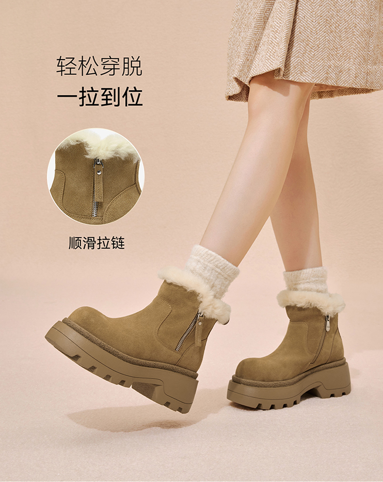 | 帮面材质:牛剖层革 | 配跟:无 | 靴筒口围:32CM | 上市时间:2025年冬季 | 鞋类流行款式:雪地靴 |