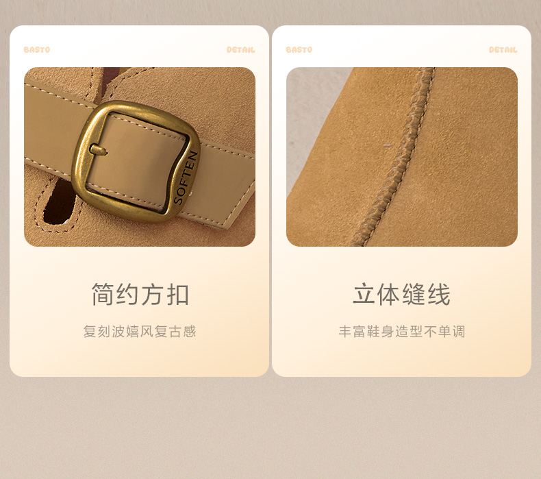 BASTO(百思图),品牌拥有17年历史,秉承优雅、甜美、清新的设计理念,主张“好嫁风”的产品风格,将甜美俏丽的少女情怀融合优雅气质的时尚品味,塑造出唯美优雅、受欢迎的女鞋款式。主打以女性温柔与亲和力为特色的流行时尚产品,糅合雅致又富有亲和力的裸粉色调,淑媛端庄、清新甜美。目前品牌已开设线下门店达1400多家。