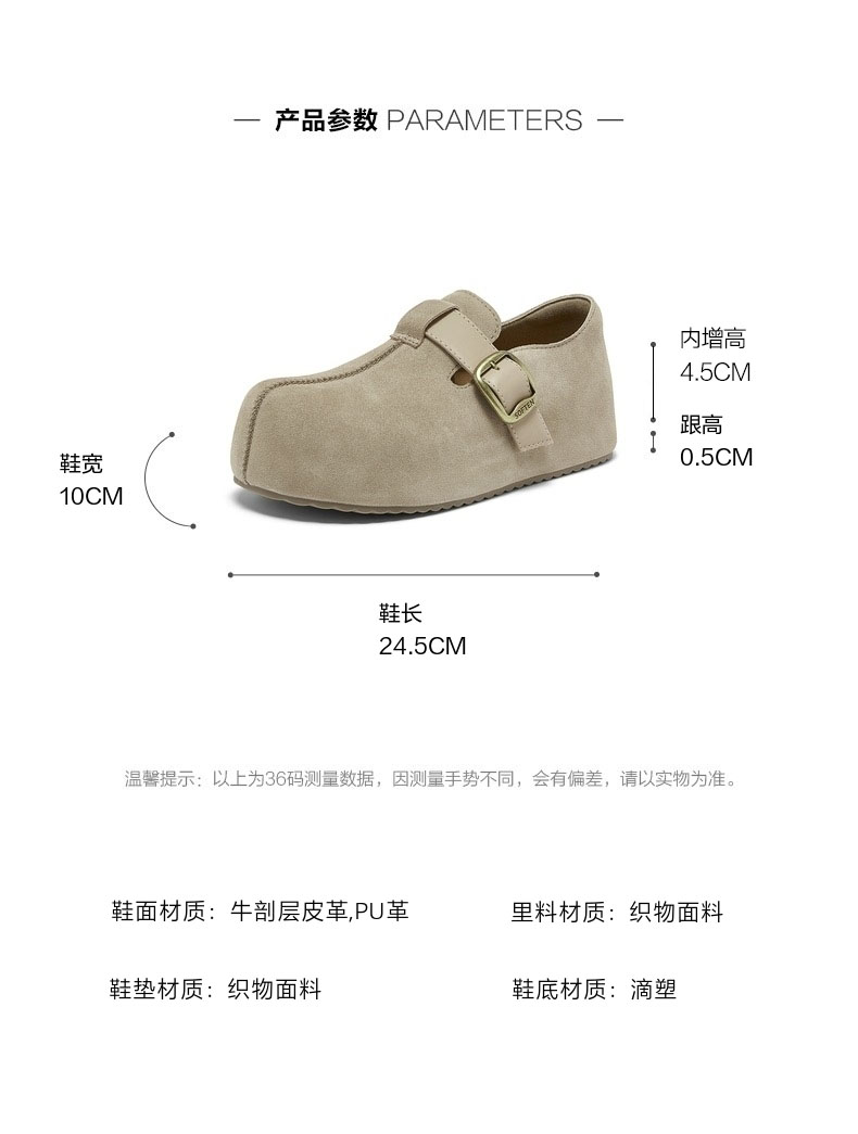 | 配跟:无 | 上市时间:2026年春季 | 鞋类流行款式:勃肯鞋 | 鞋头款式:圆头 | 鞋面图案:纯色 |