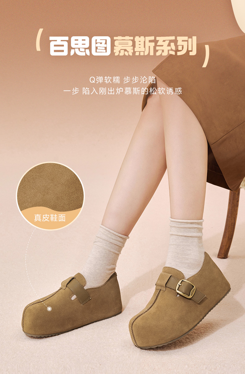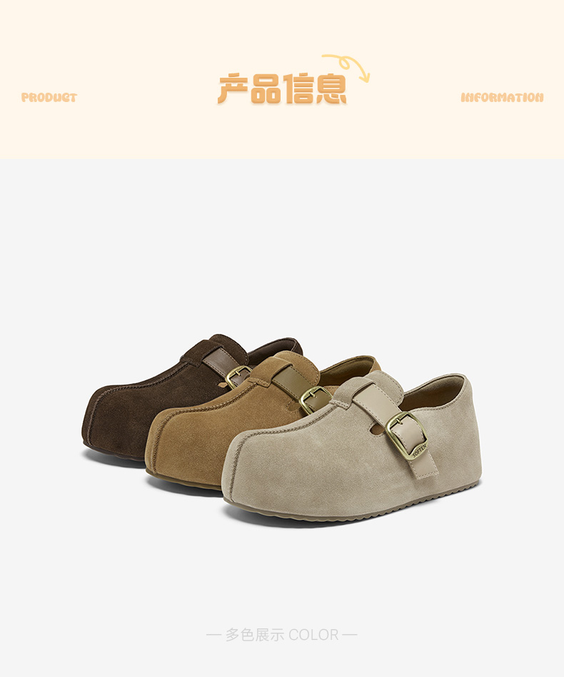 | 配跟:无 | 上市时间:2026年春季 | 鞋类流行款式:勃肯鞋 | 鞋头款式:圆头 | 鞋面图案:纯色 |
