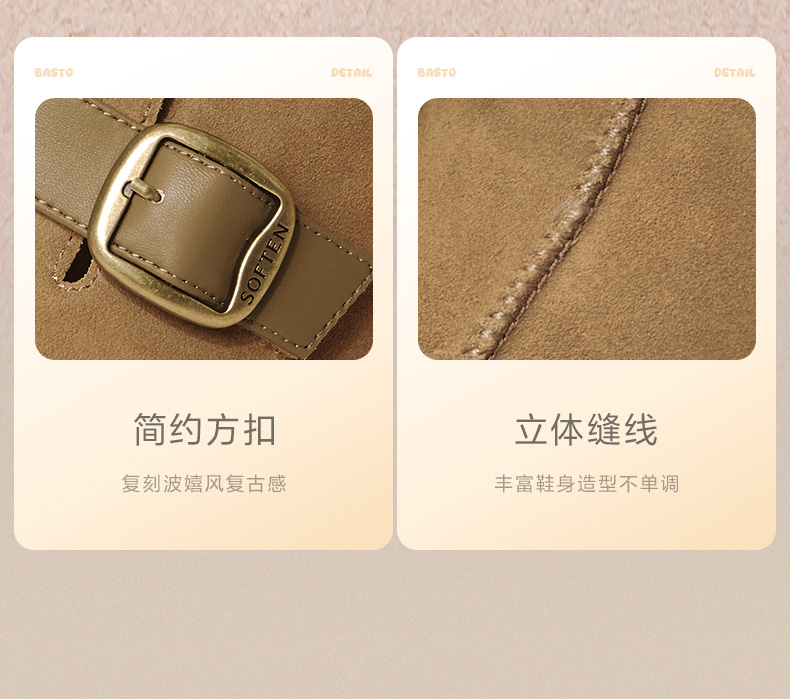 BASTO(百思图),品牌拥有17年历史,秉承优雅、甜美、清新的设计理念,主张“好嫁风”的产品风格,将甜美俏丽的少女情怀融合优雅气质的时尚品味,塑造出唯美优雅、受欢迎的女鞋款式。主打以女性温柔与亲和力为特色的流行时尚产品,糅合雅致又富有亲和力的裸粉色调,淑媛端庄、清新甜美。目前品牌已开设线下门店达1400多家。