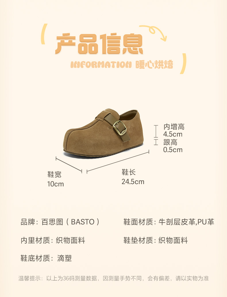 | 鞋帮:低帮 | 鞋底材质:滴塑 | 内增高:4.5CM | 鞋面材质:PU革牛剖层皮革 | 闭合方式:搭扣 |
