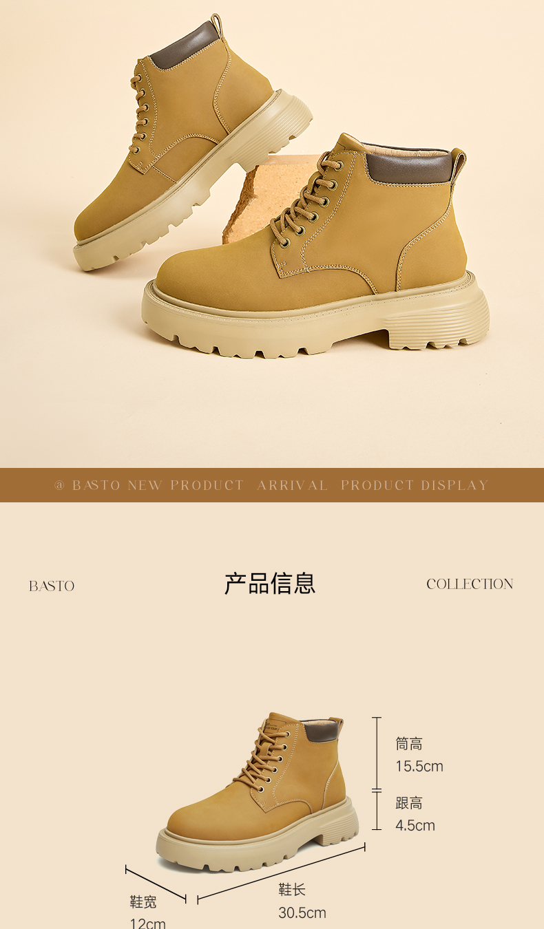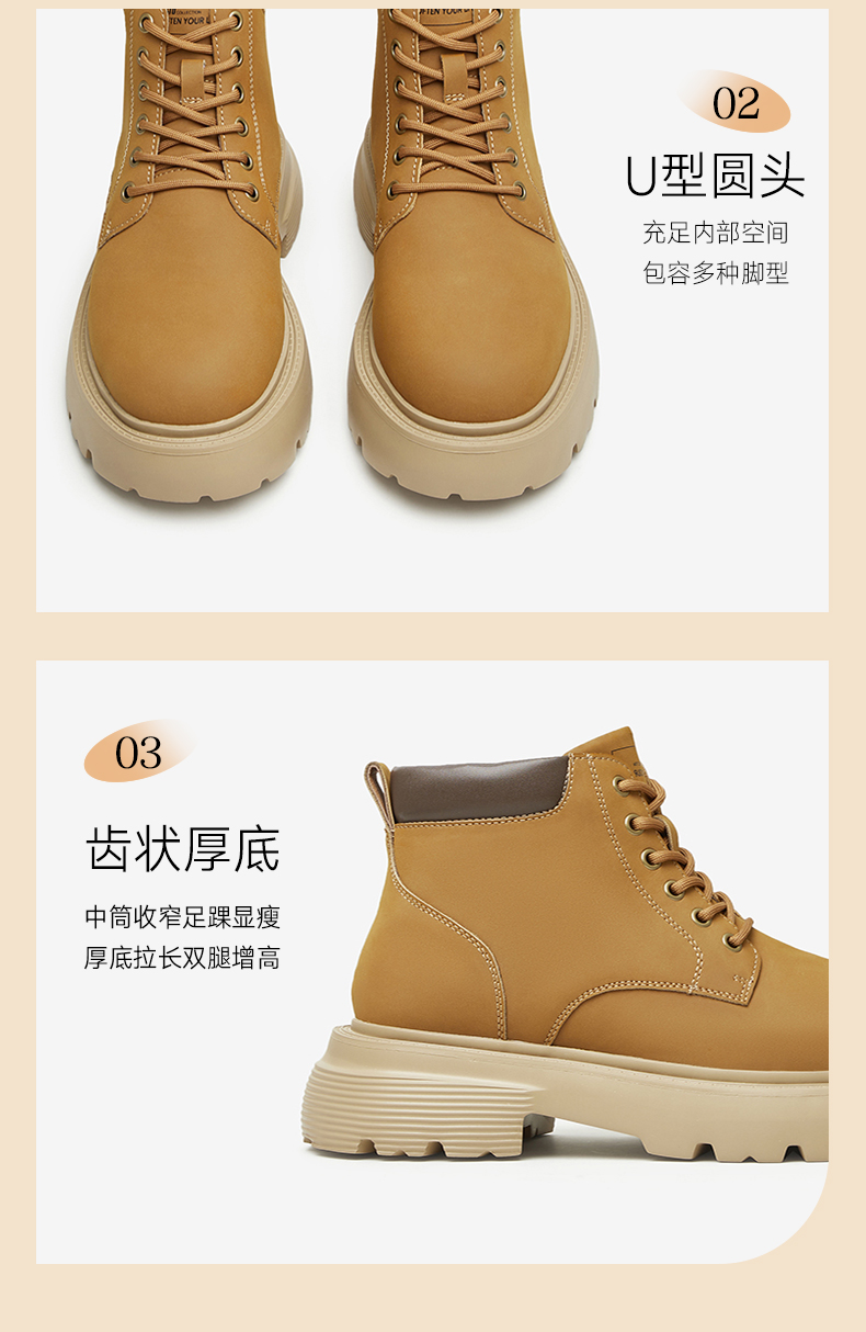 | 闭合方式:系带 | 40码鞋宽参考(男):12CM | 靴筒口围:32CM | 上市时间:2023年冬季 | 鞋类流行款式:马丁靴 |