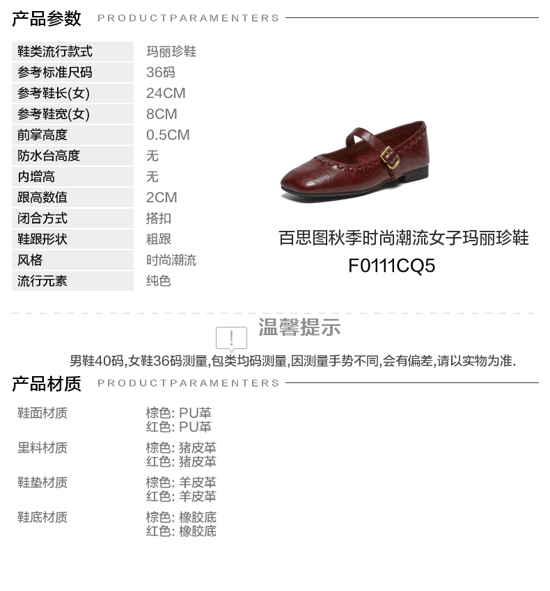 | 皮质特征:无 | 前掌高度:0.5CM | 防水台高度:无 | 鞋类流行款式:玛丽珍鞋 |