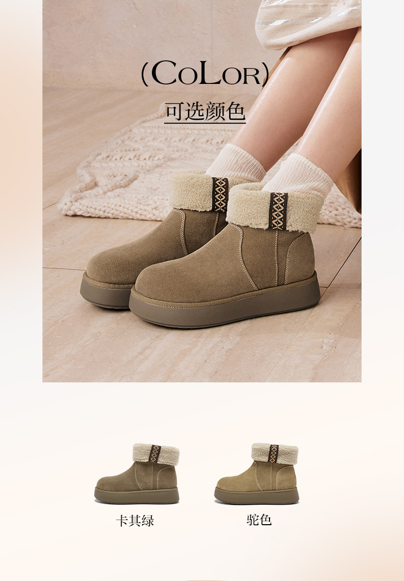 | 参考鞋宽(女):11CM | 风格:休闲 | 鞋面内里材质:人造长毛绒 | 色系:卡其 | 跟高数值:4CM |
