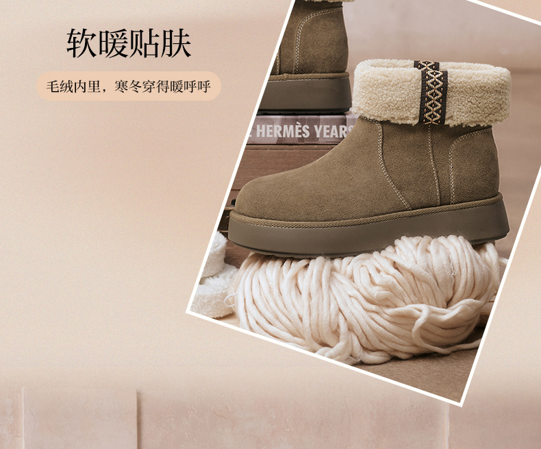 | 帮面材质:牛剖层革 | 配跟:无 | 靴筒口围:40CM | 上市时间:2025年冬季 | 鞋类流行款式:雪地靴 |