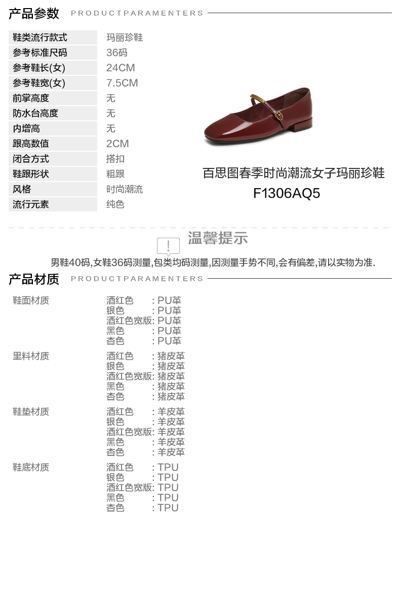 | 皮质特征:无 | 前掌高度:无 | 防水台高度:无 | 鞋类流行款式:玛丽珍鞋 |