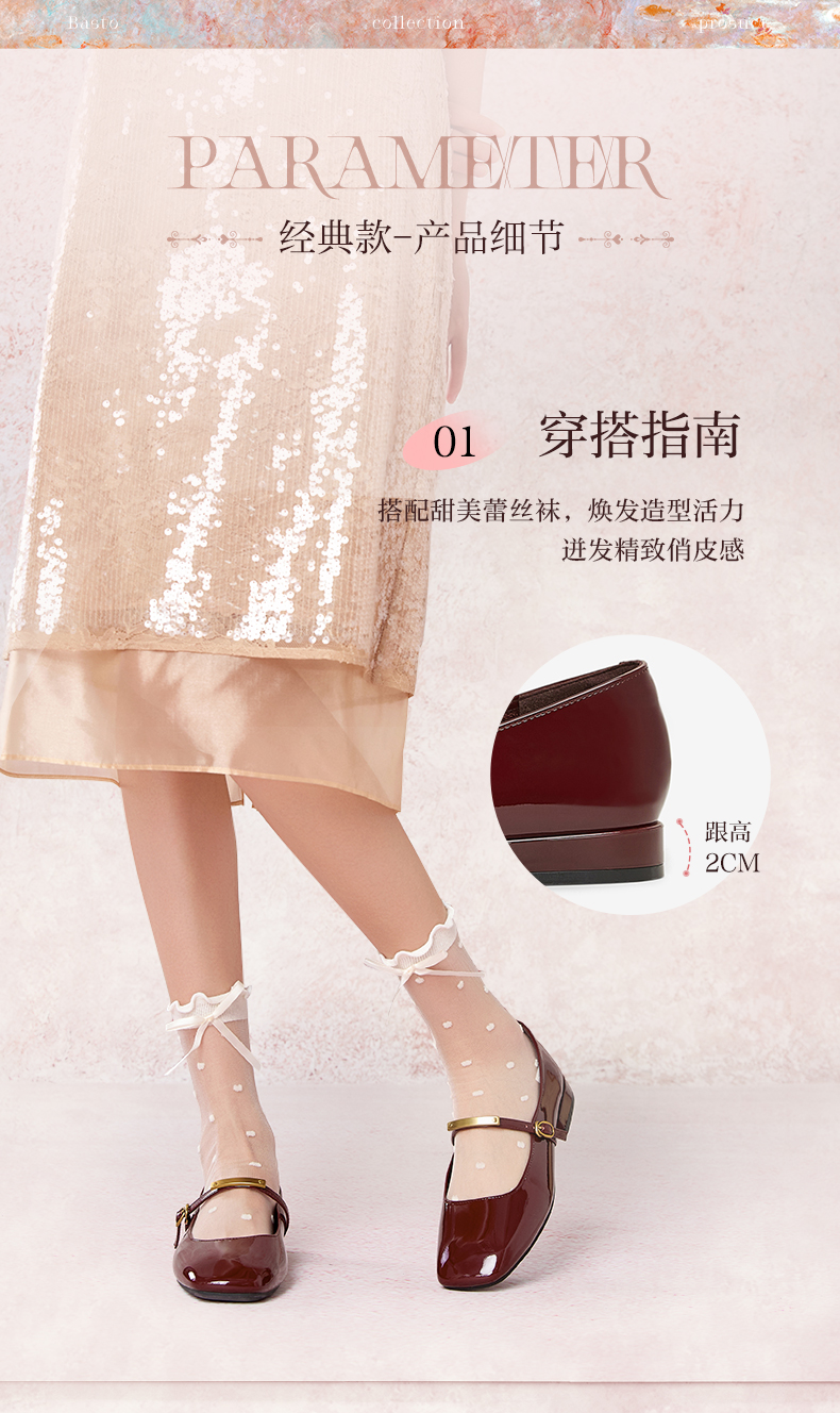 BASTO(百思图),品牌拥有17年历史,秉承优雅、甜美、清新的设计理念,主张“好嫁风”的产品风格,将甜美俏丽的少女情怀融合优雅气质的时尚品味,塑造出唯美优雅、受欢迎的女鞋款式。主打以女性温柔与亲和力为特色的流行时尚产品,糅合雅致又富有亲和力的裸粉色调,淑媛端庄、清新甜美。目前品牌已开设线下门店达1400多家。