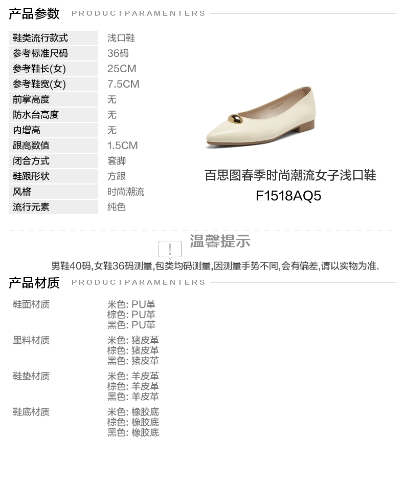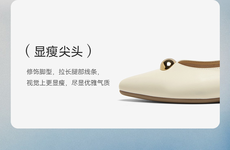 | 上市时间:2025年春季 | 生产/经销/进口厂家:丽荣鞋业(深圳)有限公司 | 鞋类流行款式:浅口鞋 | 鞋头款式:尖头 | 执行标准:舒适上班鞋Q/LR001-2023 |