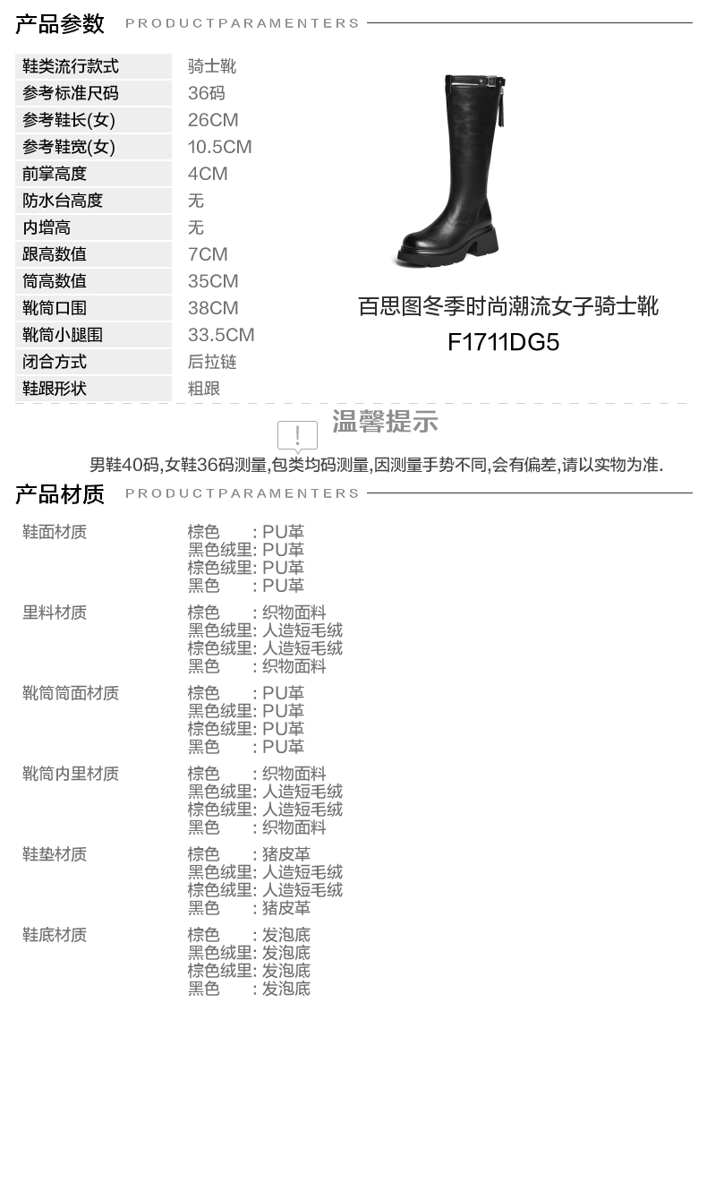 | 风格:时尚潮流 | 色系:黑色 | 跟高数值:7CM | 性别:女子 | 筒高数值:35CM |