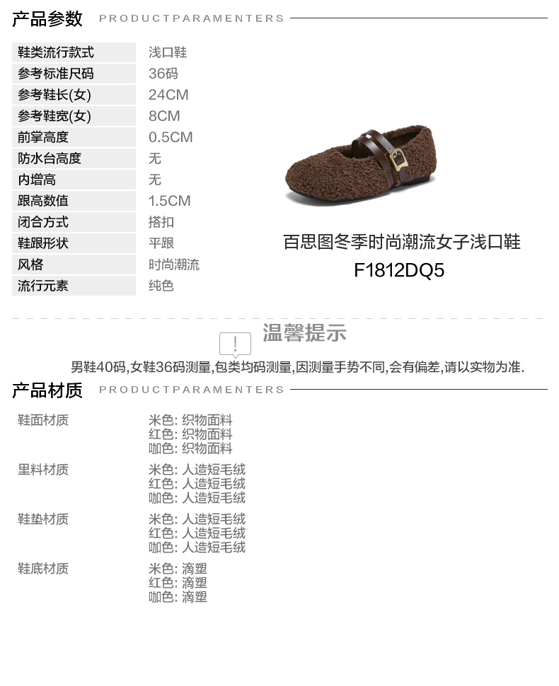 | 上市时间:2025年冬季 | 鞋类流行款式:浅口鞋 | 鞋头款式:圆头 | 鞋面图案:纯色 | 鞋跟形状:平跟 |