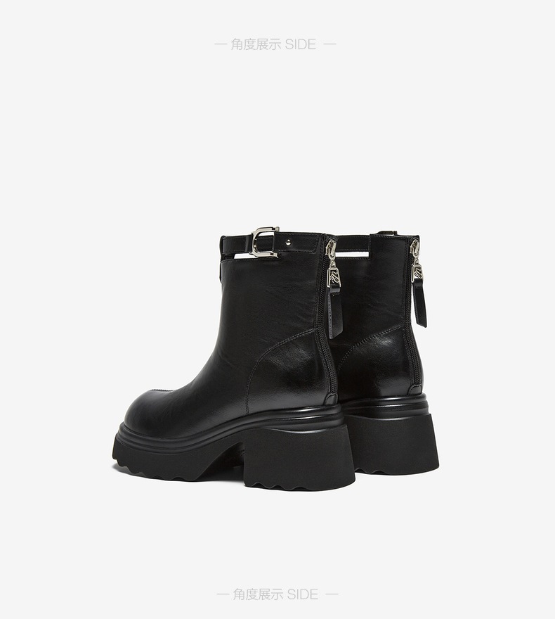| 鞋底材质:发泡底 | 靴筒内里材质:织物面料 | 内增高:无 | 鞋面材质:PU革 | 闭合方式:后拉链 |