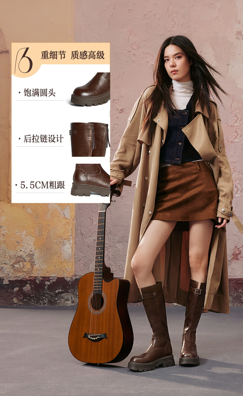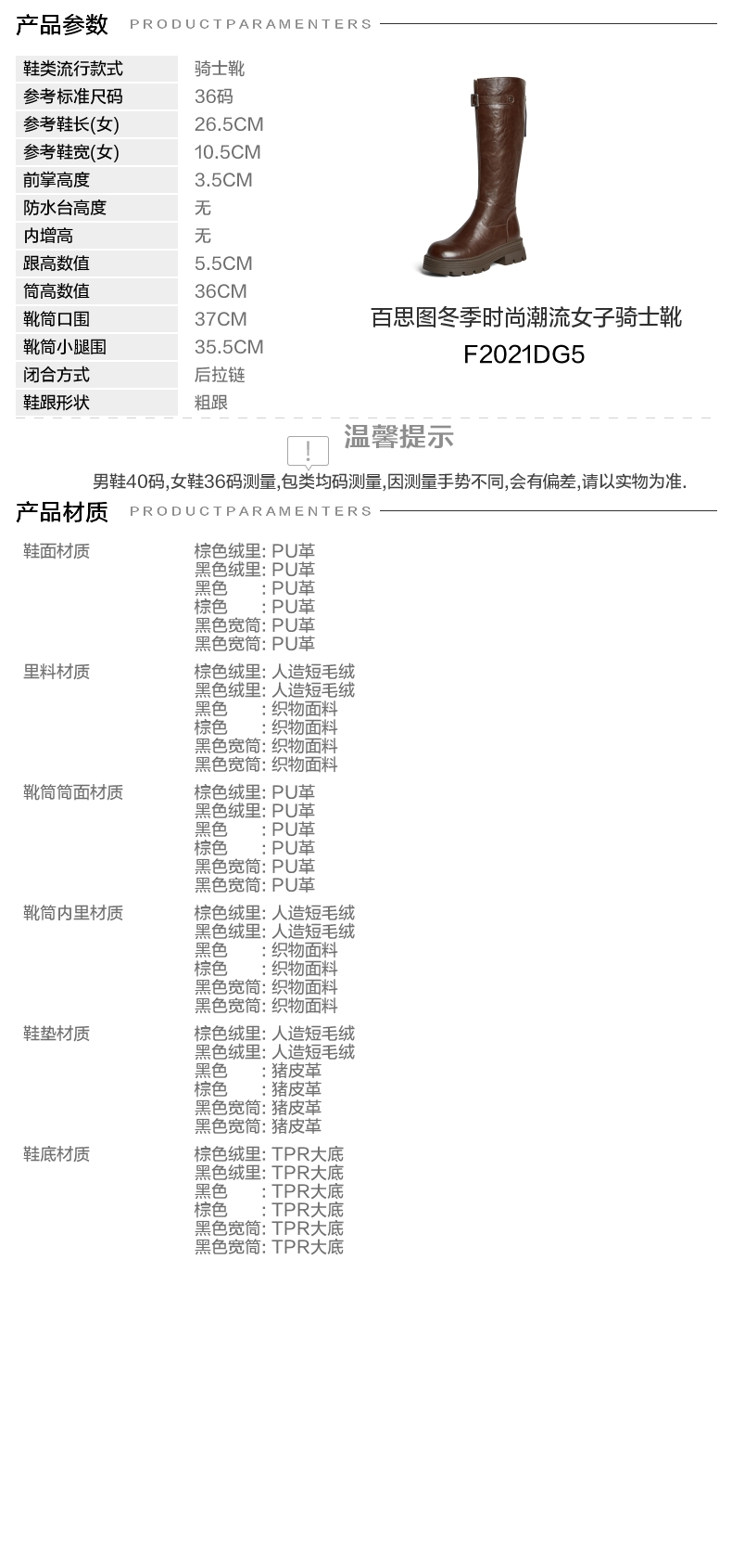 | 风格:时尚潮流 | 色系:棕色 | 跟高数值:5.5CM | 性别:女子 | 筒高数值:36CM |