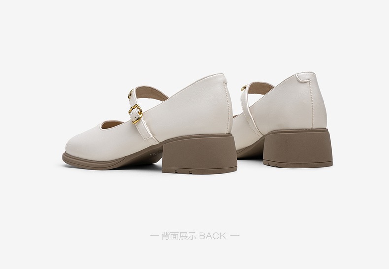 | 鞋头款式:圆头 | 鞋底材质:橡胶底 | 鞋面图案:纯色 | 内增高:无 | 鞋跟形状:粗跟 |