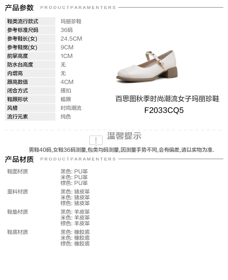 | 皮质特征:无 | 前掌高度:1CM | 防水台高度:无 | 鞋类流行款式:玛丽珍鞋 |
