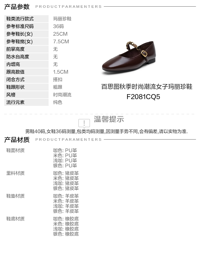 | 皮质特征:无 | 前掌高度:无 | 防水台高度:无 | 鞋类流行款式:玛丽珍鞋 |