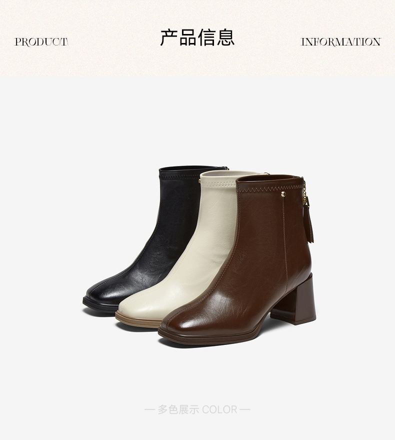 | 鞋底材质:橡胶底 | 靴筒内里材质:织物面料 | 内增高:无 | 鞋面材质:PU革 | 闭合方式:后拉链 |