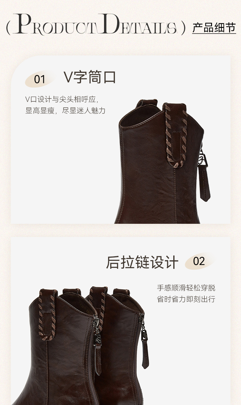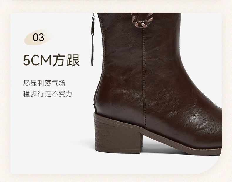 | 风格:时尚潮流 | 色系:棕色 | 跟高数值:5CM | 性别:女子 | 筒高数值:19CM |