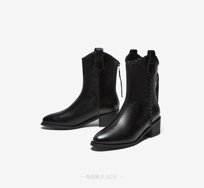 | 鞋底材质:橡胶底 | 靴筒内里材质:织物面料 | 内增高:无 | 鞋面材质:PU革 | 闭合方式:后拉链 |