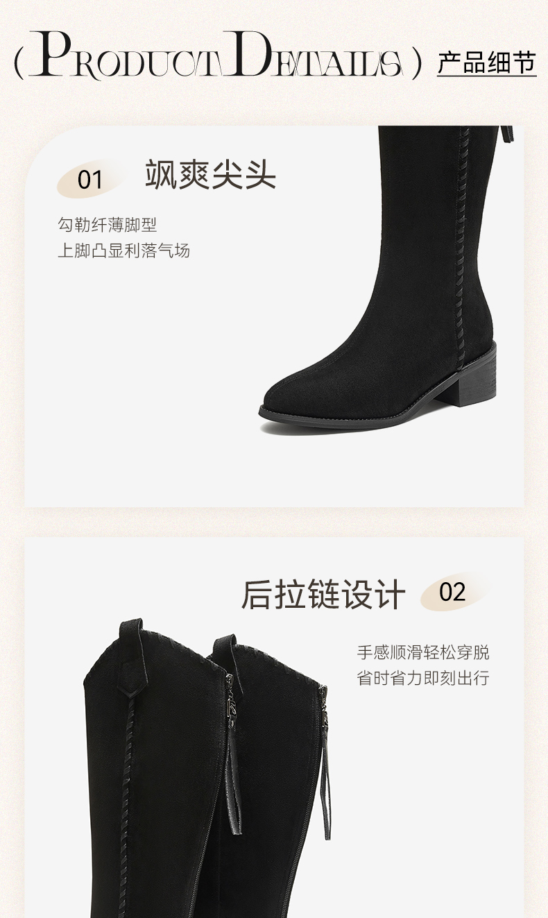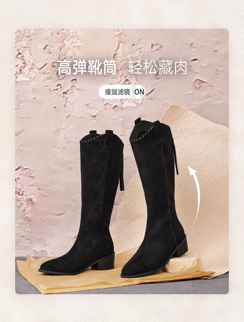 | 配跟:无 | 靴筒口围:37CM | 上市时间:2025年冬季 | 鞋类流行款式:骑士靴 | 鞋头款式:尖头 |