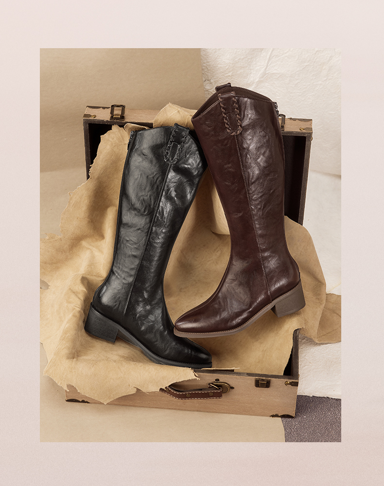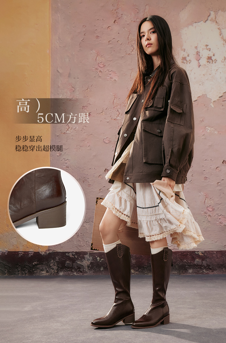 | 风格:时尚潮流 | 色系:棕色 | 跟高数值:5CM | 性别:女子 | 筒高数值:38CM |