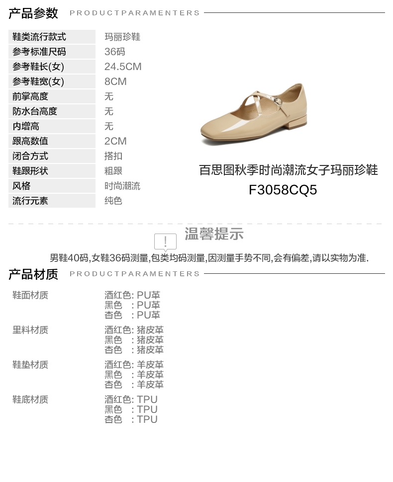 | 皮质特征:无 | 前掌高度:无 | 防水台高度:无 | 鞋类流行款式:玛丽珍鞋 |
