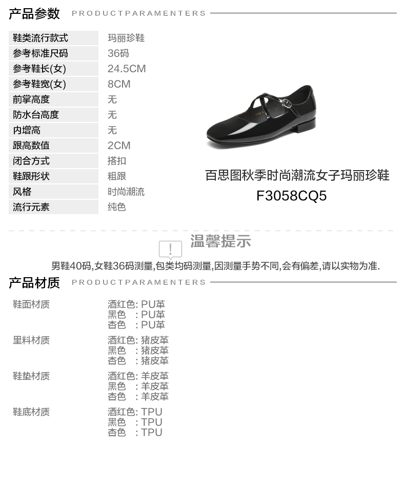 | 皮质特征:无 | 前掌高度:无 | 防水台高度:无 | 鞋类流行款式:玛丽珍鞋 |