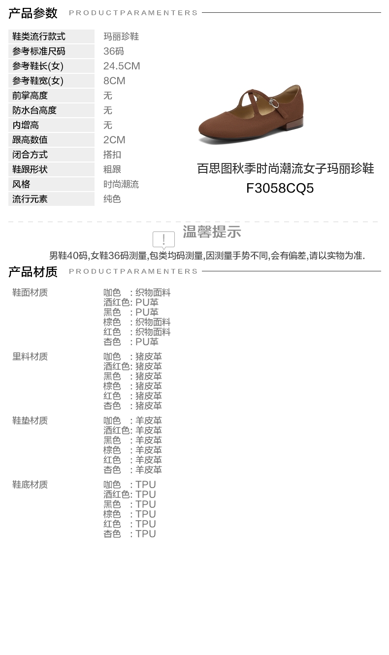 | 皮质特征:无 | 前掌高度:无 | 防水台高度:无 | 鞋类流行款式:玛丽珍鞋 |