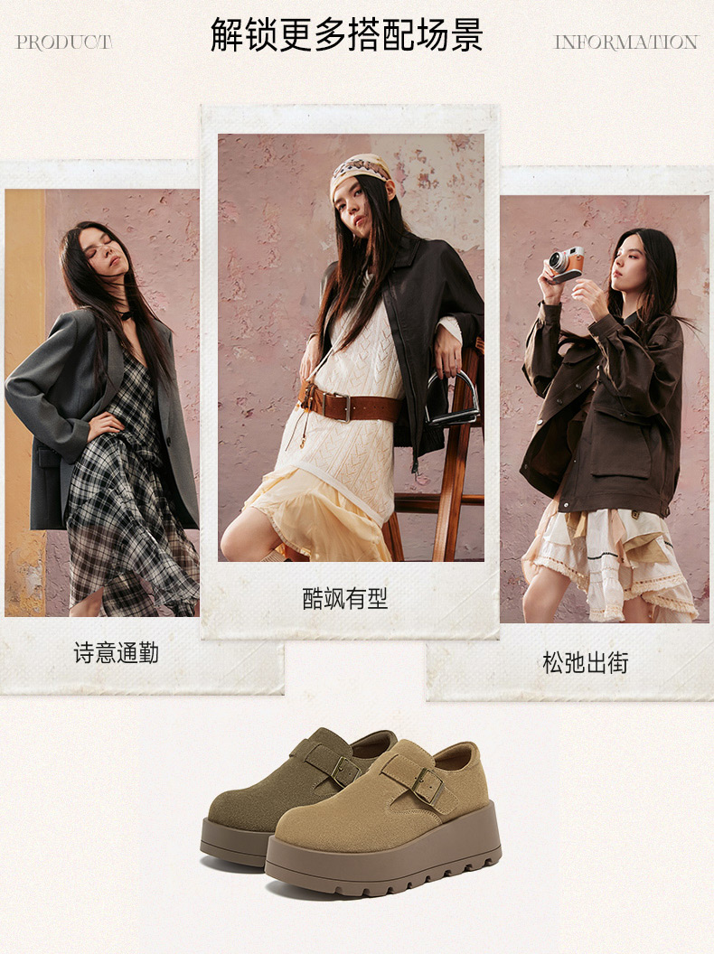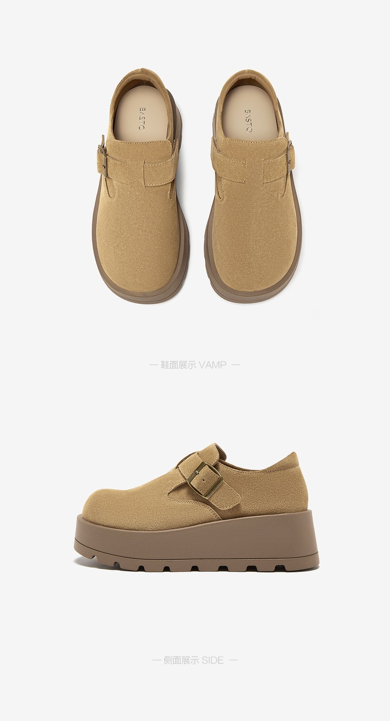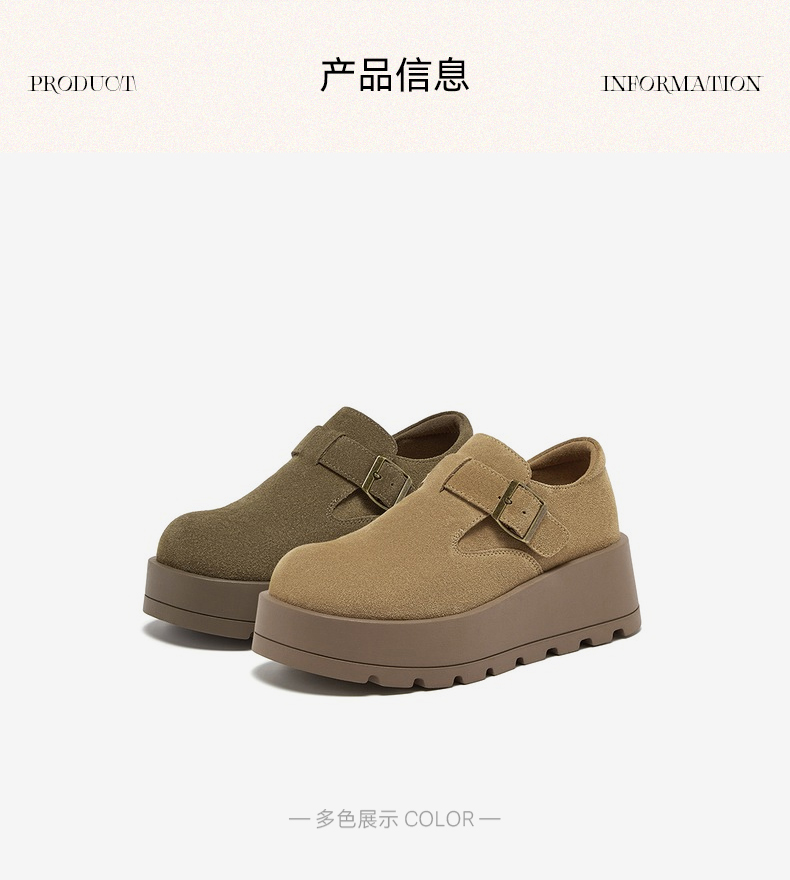 | 鞋垫材质:羊皮革 | 款式季节:秋季 | 前掌高度:4CM | 皮质特征:二层皮 | 防水台高度:无 |