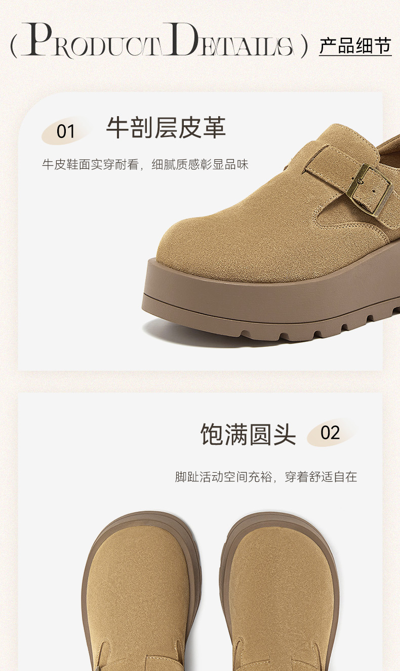 | 配跟:无 | 上市时间:2025年秋季 | 鞋类流行款式:勃肯鞋 | 鞋头款式:圆头 | 鞋面图案:纯色 |