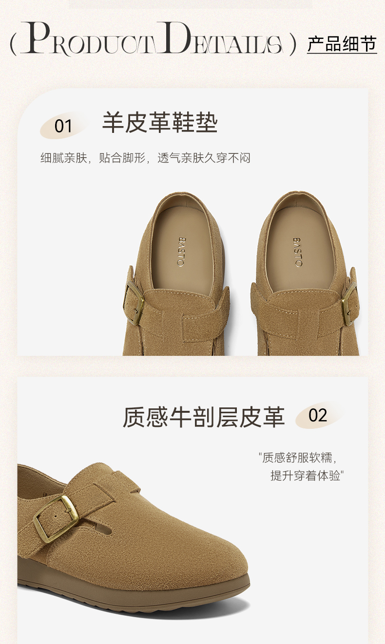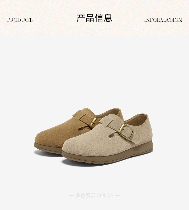 | 配跟:无 | 上市时间:2025年秋季 | 鞋类流行款式:勃肯鞋 | 鞋头款式:圆头 | 鞋面图案:纯色 |