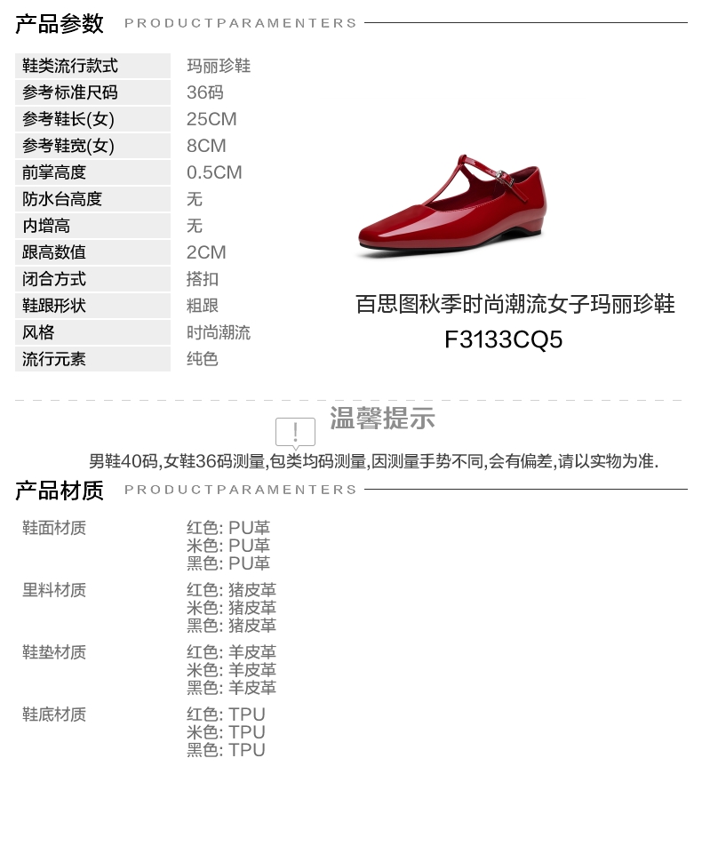 | 皮质特征:无 | 前掌高度:0.5CM | 防水台高度:无 | 鞋类流行款式:玛丽珍鞋 |