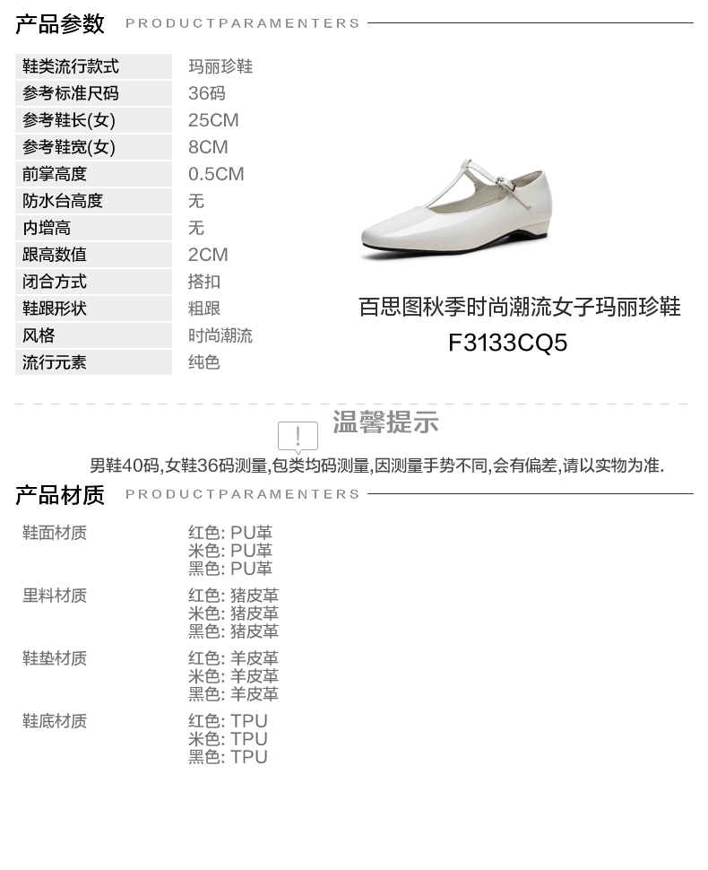 | 皮质特征:无 | 前掌高度:0.5CM | 防水台高度:无 | 鞋类流行款式:玛丽珍鞋 |