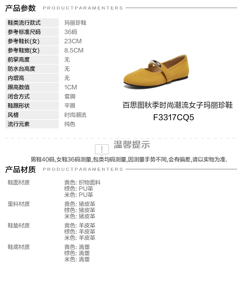 | 风格:时尚潮流 | 跟高数值:1CM | 色系:黄色 | 配跟:无 | 性别:女子 |