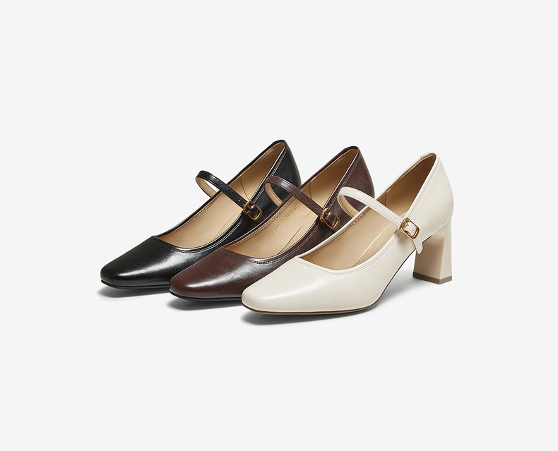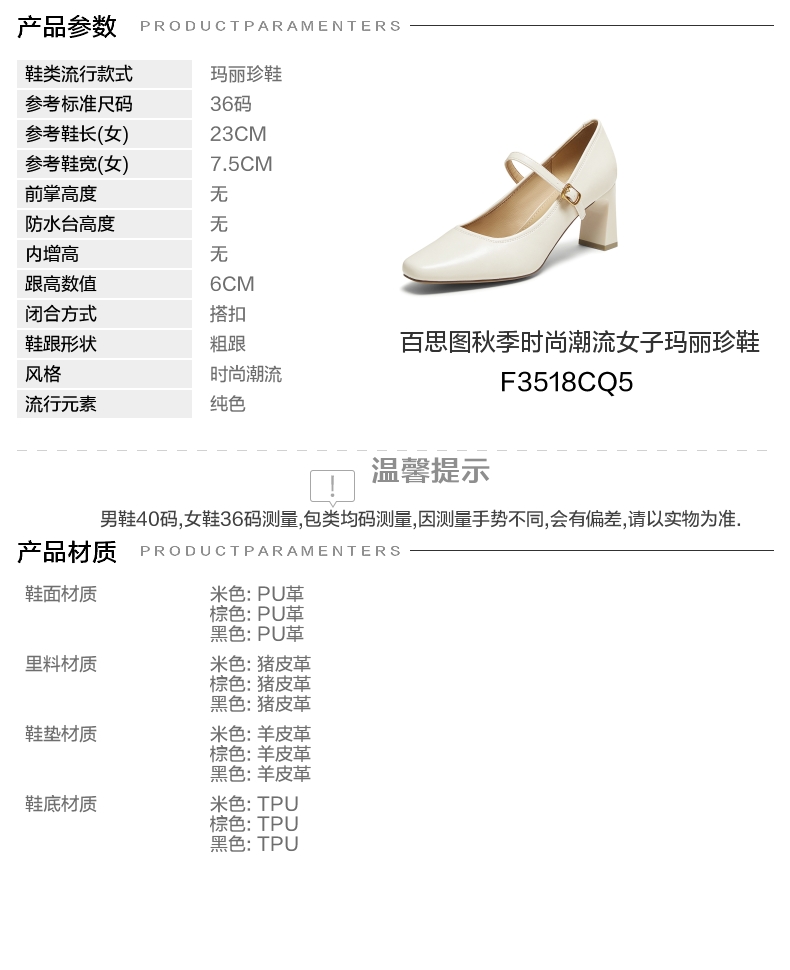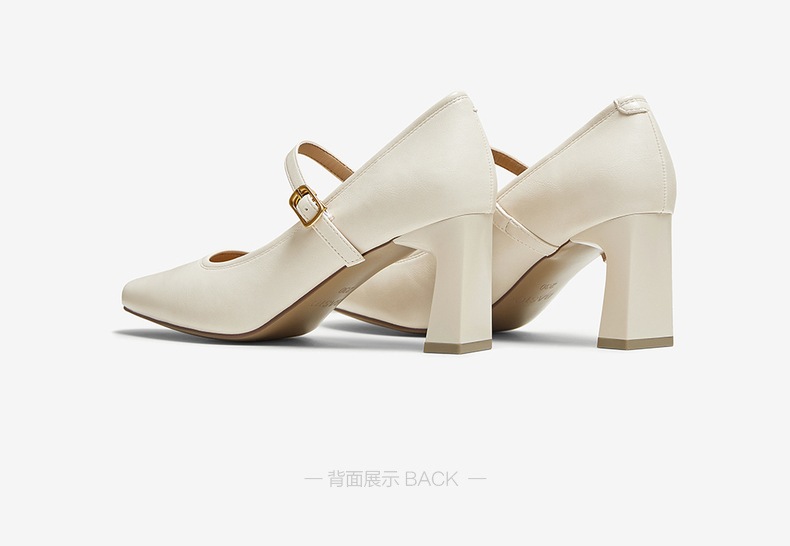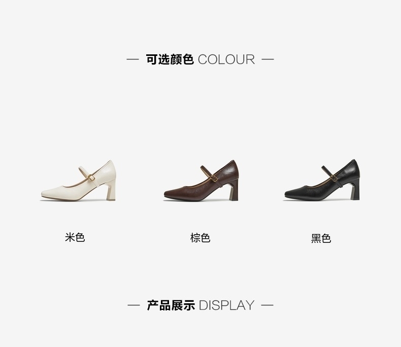 | 鞋头款式:小方头 | 鞋底材质:TPU | 鞋面图案:纯色 | 内增高:无 | 鞋跟形状:粗跟 |