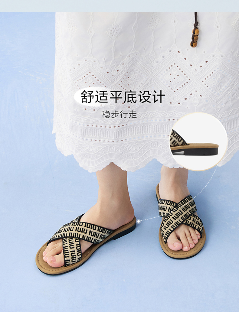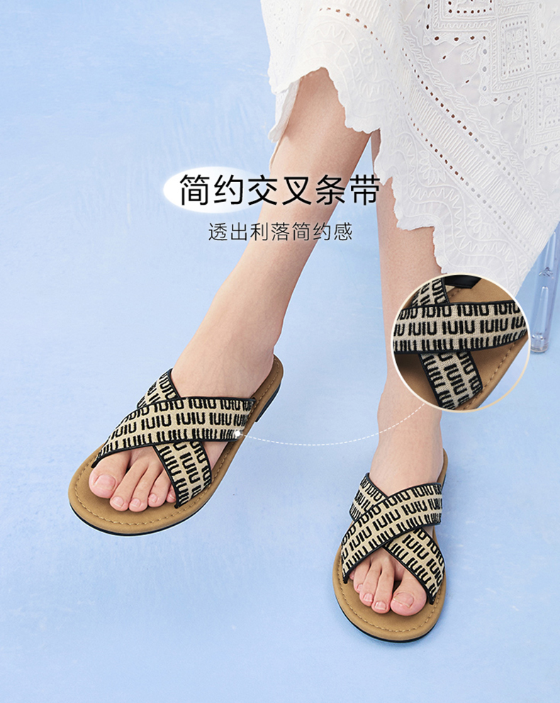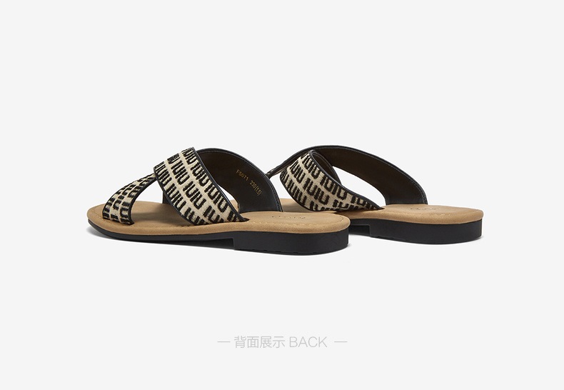 | 鞋头款式:露趾 | 鞋底材质:橡胶底 | 鞋面图案:纯色 | 鞋跟形状:平跟 | 鞋面材质:织物面料PU |