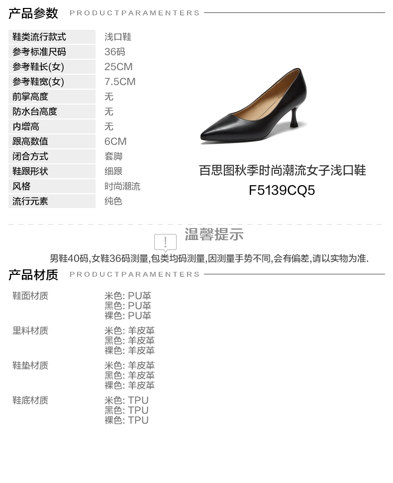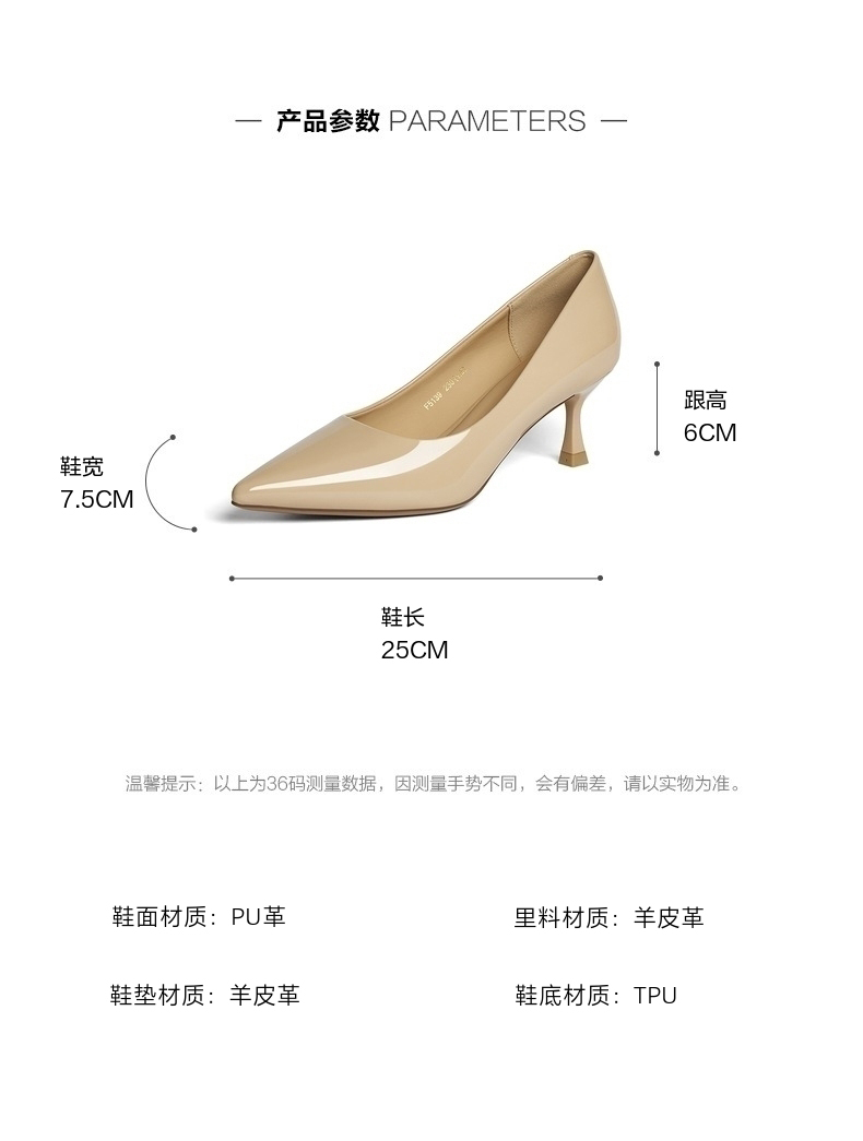 | 鞋头款式:尖头 | 鞋底材质:TPU | 鞋面图案:纯色 | 内增高:无 | 鞋跟形状:细跟 |