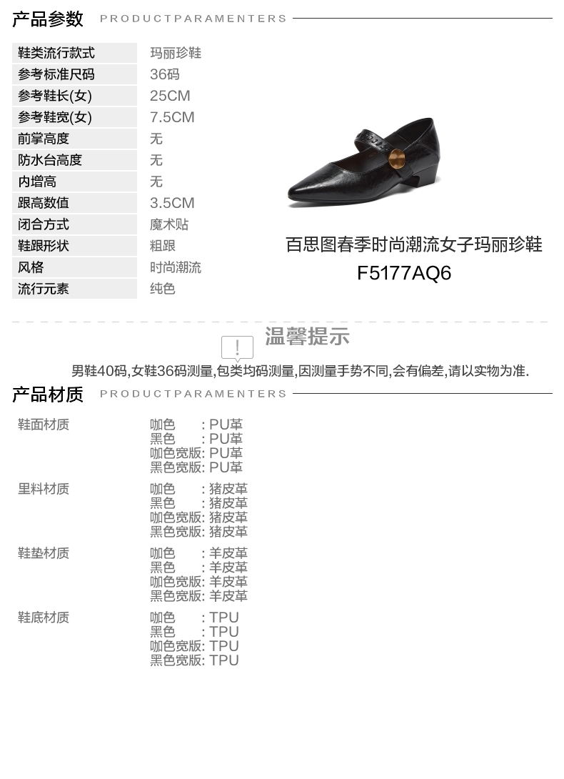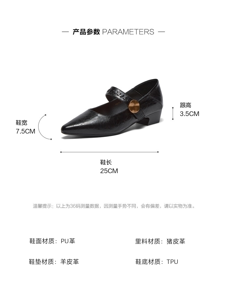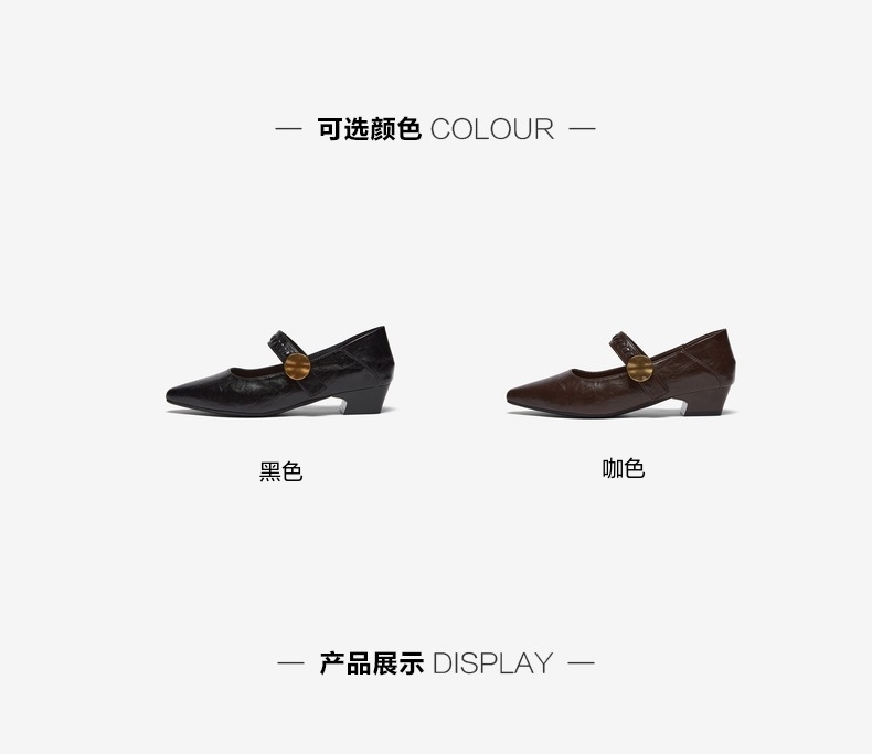 | 上市时间:2026年春季 | 鞋类流行款式:玛丽珍鞋 | 鞋头款式:尖头 | 鞋面图案:纯色 | 鞋跟形状:粗跟 |