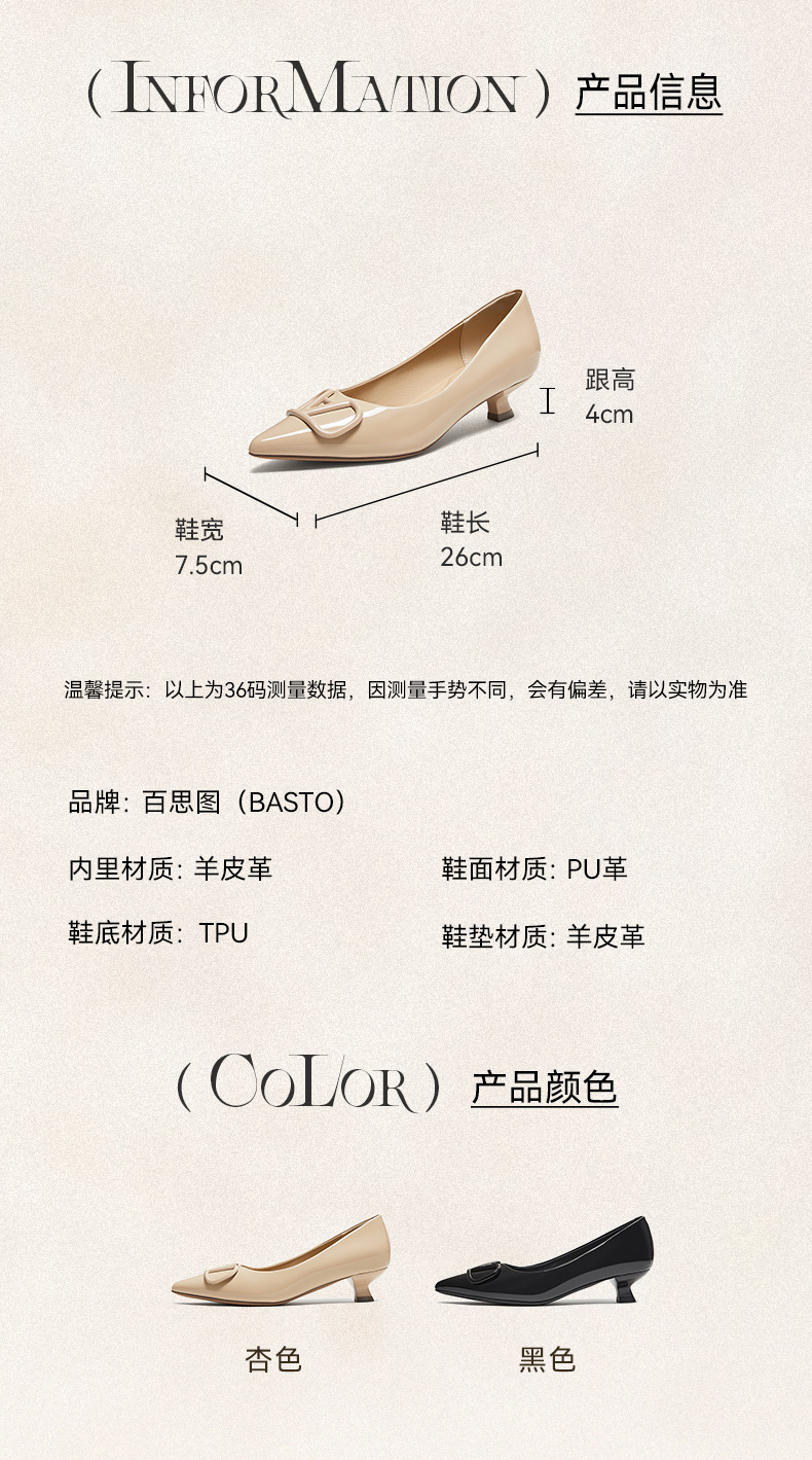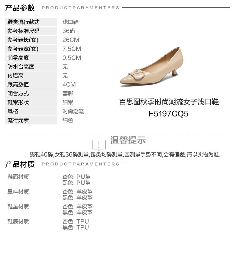 | 鞋头款式:尖头 | 鞋底材质:TPU | 鞋面图案:纯色 | 内增高:无 | 鞋跟形状:细跟 |