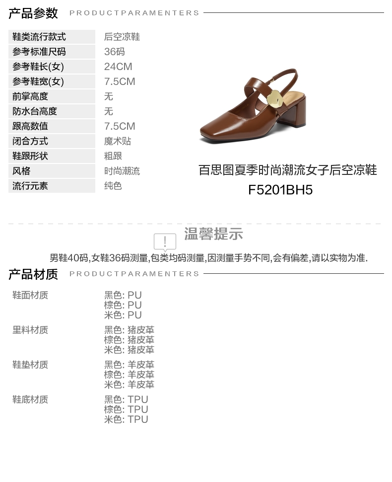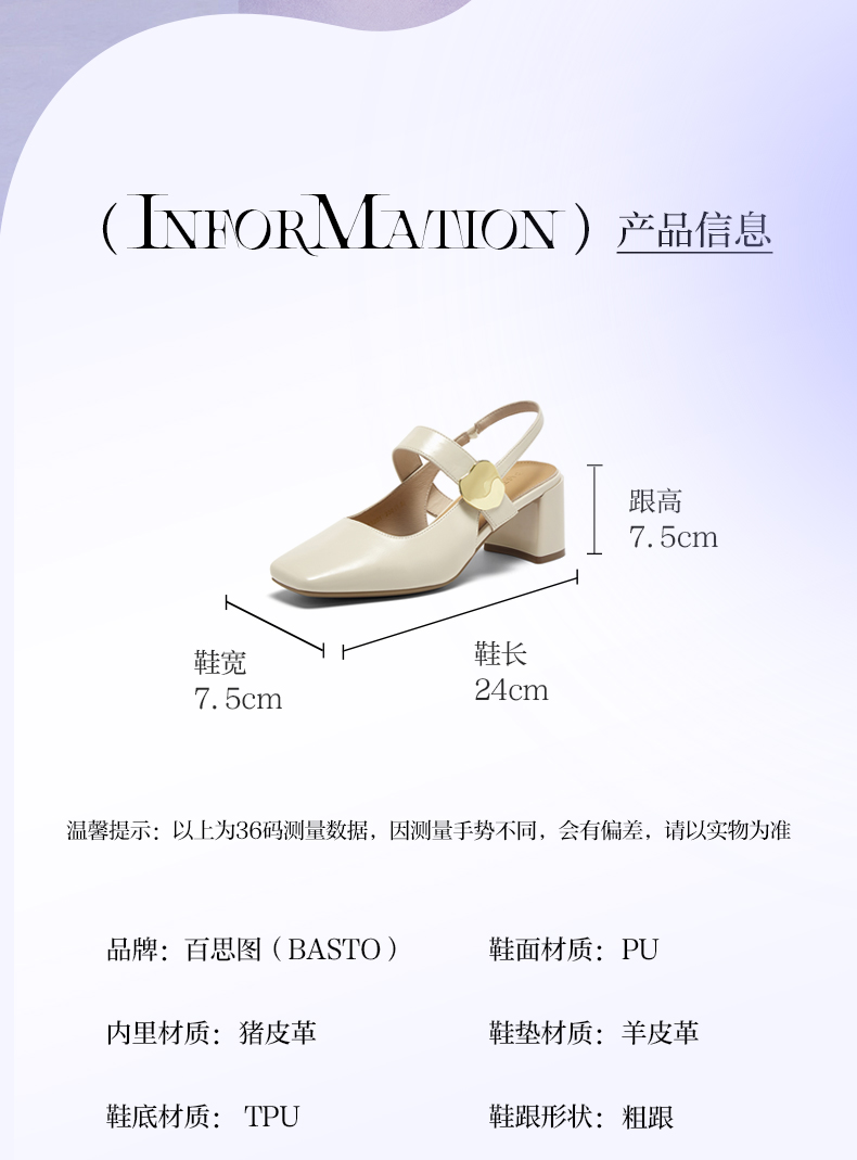 | 鞋头款式:方头 | 鞋底材质:TPU | 鞋面图案:纯色 | 鞋跟形状:粗跟 | 鞋面材质:PU |
