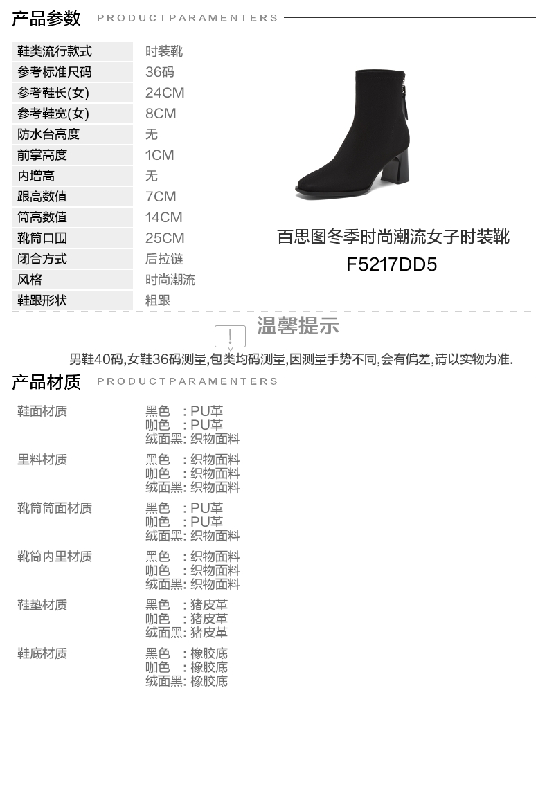 | 参考鞋宽(女):8CM | 风格:时尚潮流 | 色系:黑色 | 跟高数值:7CM | 筒高数值:14CM |