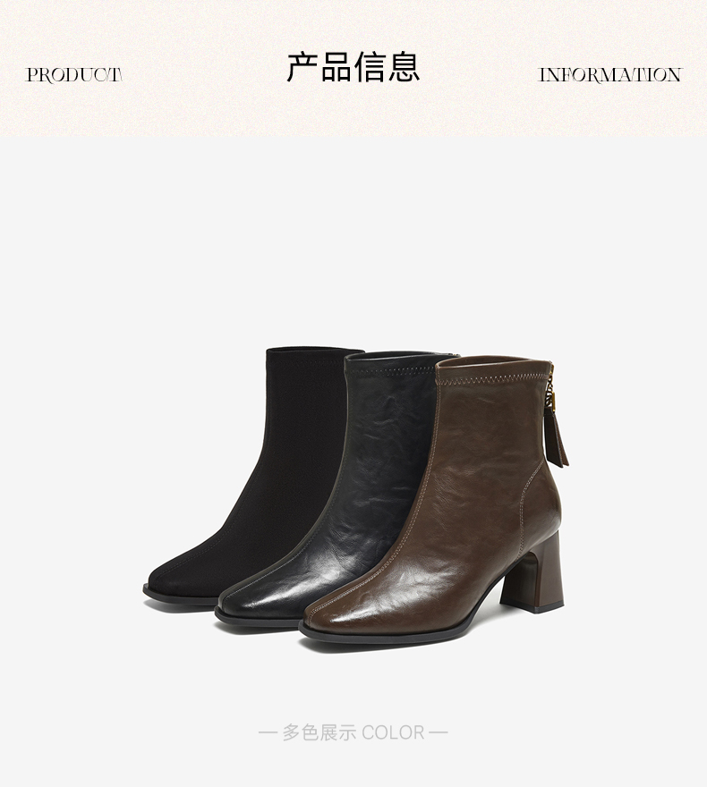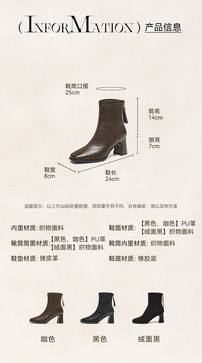 | 鞋底材质:橡胶底 | 靴筒内里材质:织物面料 | 内增高:无 | 鞋面材质:织物面料 | 闭合方式:后拉链 |