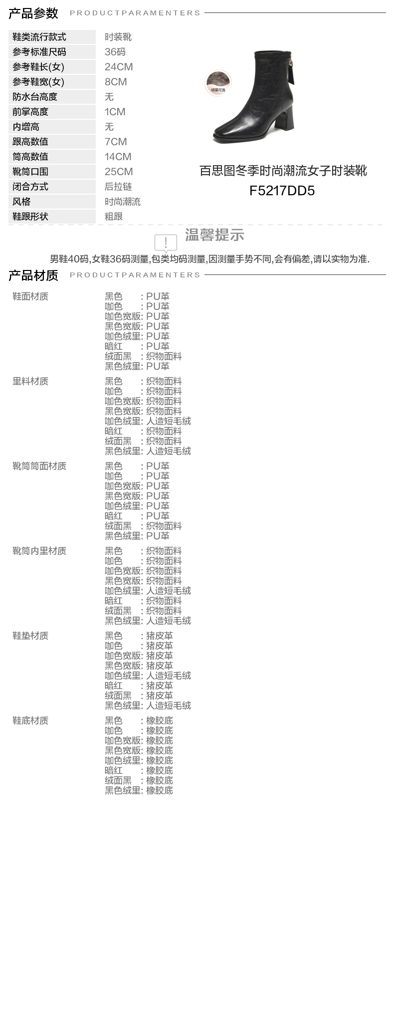 | 款式季节:冬季 | 前掌高度:1CM | 皮质特征:无 | 防水台高度:无 |