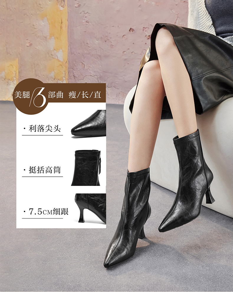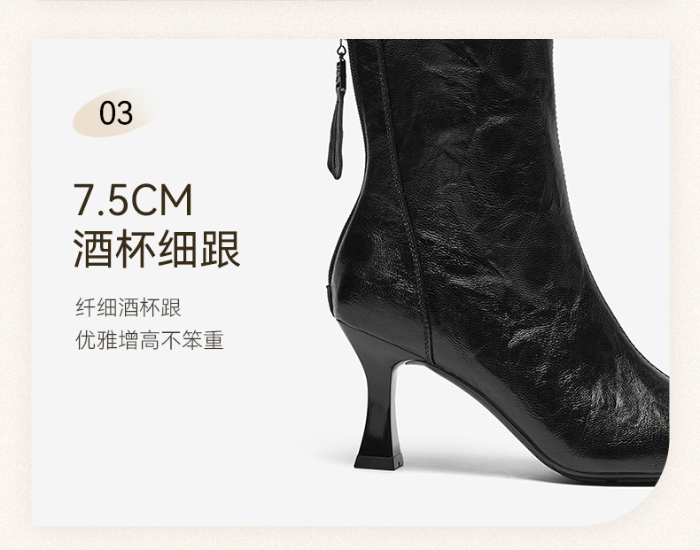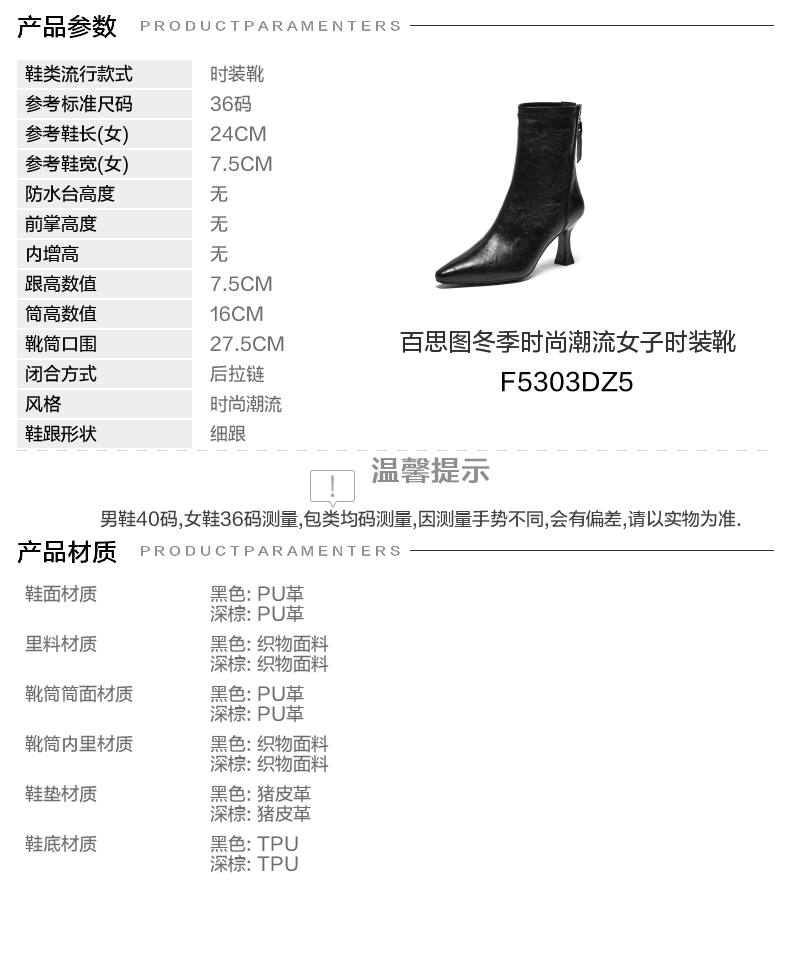 | 参考鞋宽(女):7.5CM | 风格:时尚潮流 | 色系:黑色 | 跟高数值:7.5CM | 筒高数值:16CM |