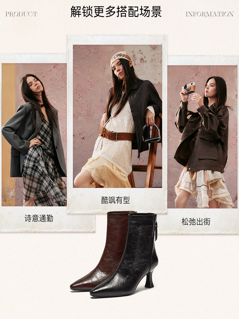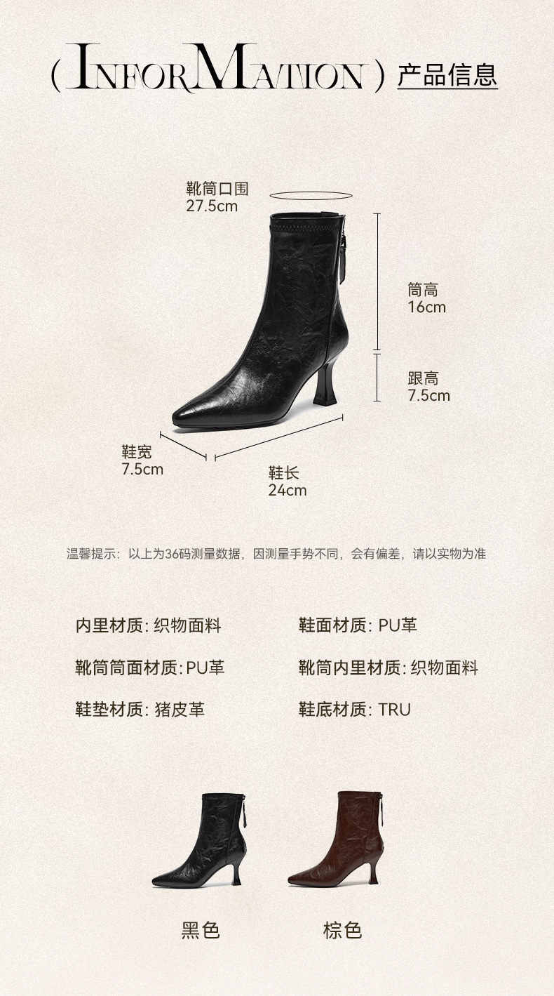 | 鞋底材质:TPU | 靴筒内里材质:织物面料 | 内增高:无 | 鞋面材质:PU革 | 闭合方式:后拉链 |