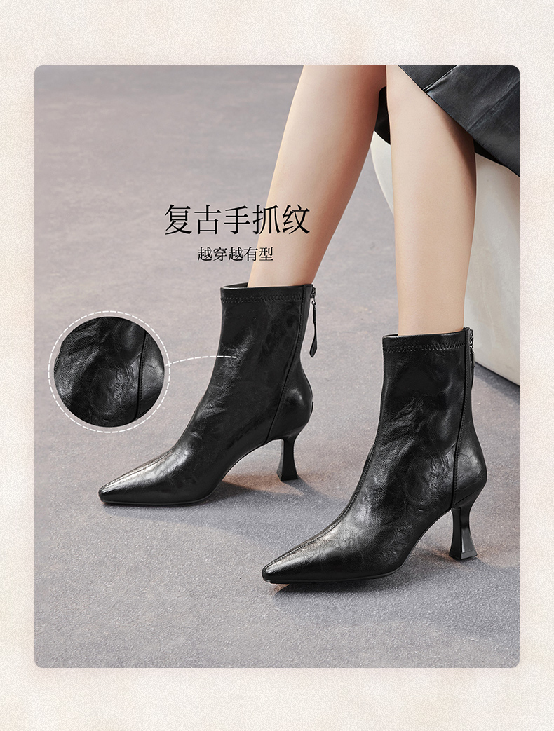 | 鞋底材质:TPU | 靴筒内里材质:织物面料 | 内增高:无 | 鞋面材质:PU革 | 闭合方式:后拉链 |